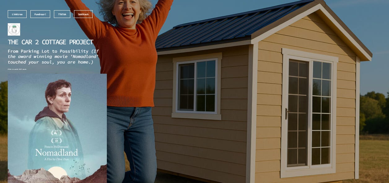 This is where the Car 2 Cottage Project begins — with one woman, one parking lot, and a quiet promise: we can do better than this.